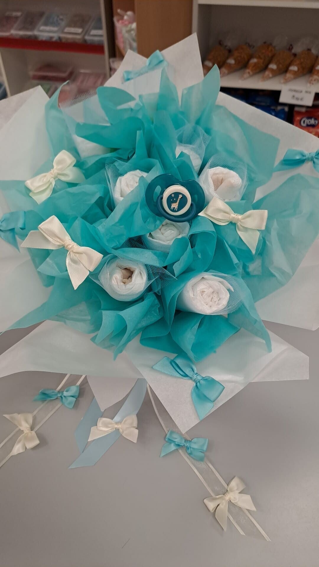 - Persoonlijk: We bieden verschillende thema's en mogelijkheden om de pampertaart te personaliseren, zodat deze perfect aansluit bij de stijl en voorkeuren van de ouders.